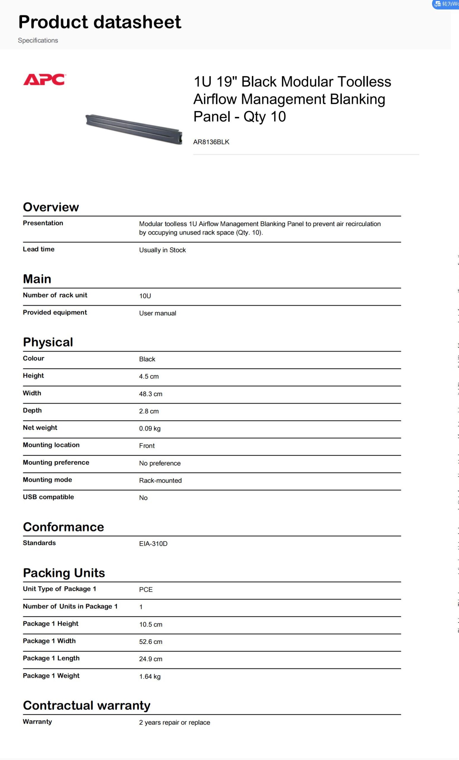 1U 19″ Black Modular Toolless Airflow Management Blanking Panel – Qty 10