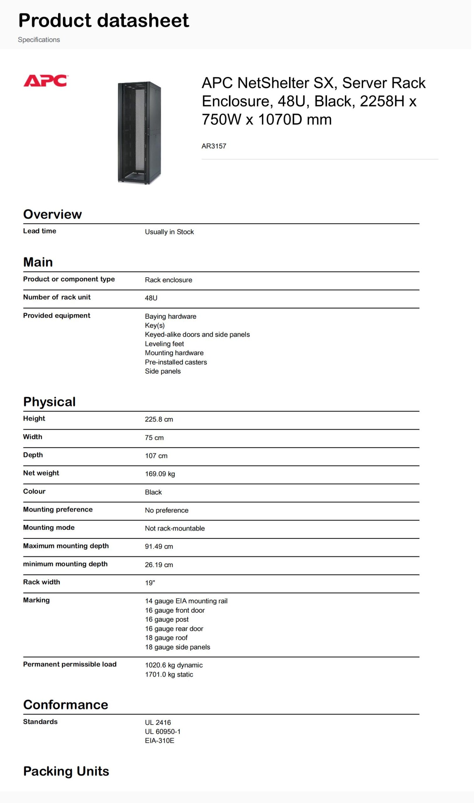 APC NetShelter SX, Server Rack Enclosure, 48U, Black, 2258H x 750W x 1070D mm