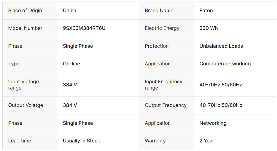 Eaton 9SXEBM480RT6U 480 V 9 AH UPS Uninterruptible Power Supply Special Battery Box 9SXEBM480RT6U Single Phase 40-70Hz 50/60Hz