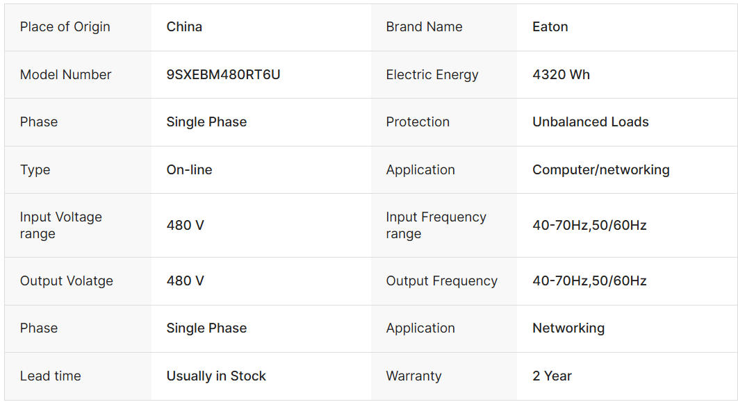Eaton 9SXEBM480RT6U 480 V 9 AH UPS Uninterruptible Power Supply Special Battery Box 9SXEBM480RT6U Single Phase 40-70Hz 50/60Hz