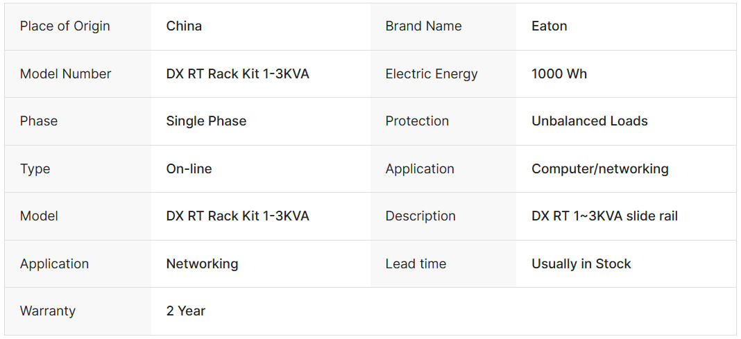 Eaton DX RT Rack Kit 1-3KVA UPS Uninterruptible Power Supply DX RT Rack Kit 1-3KVA Slide Rail Suitable for 1-3KVA