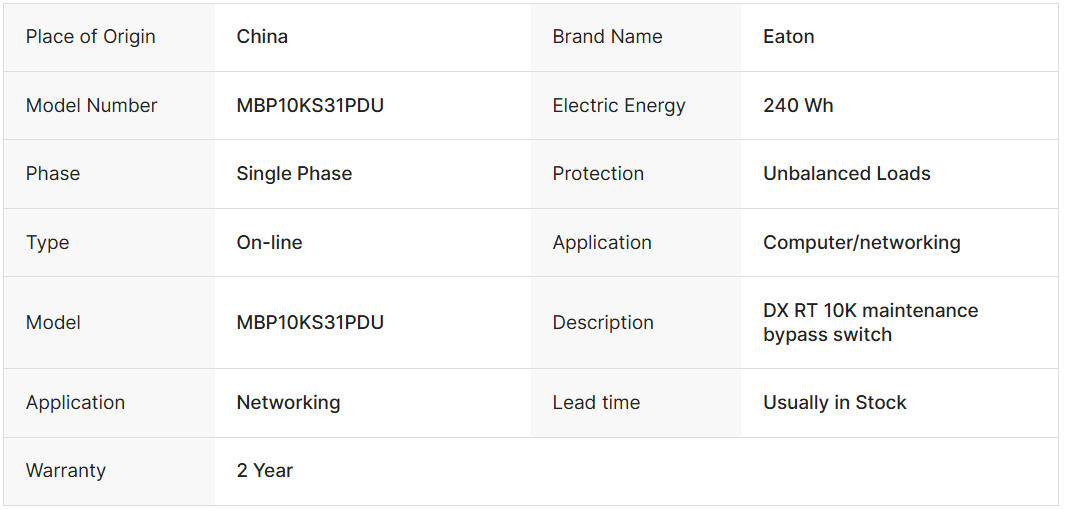 Eaton MBP10KS31PDU UPS Power Supply Maintenance Bypass Switch Eaton DX RT 10K DXRT Series