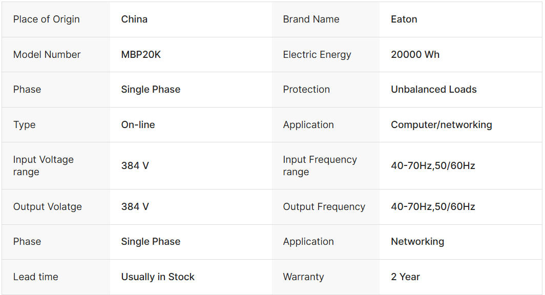 Eaton MBP20KPDU UPS Power Supply MBP20KPDU Rack/Tower Interchange 3U