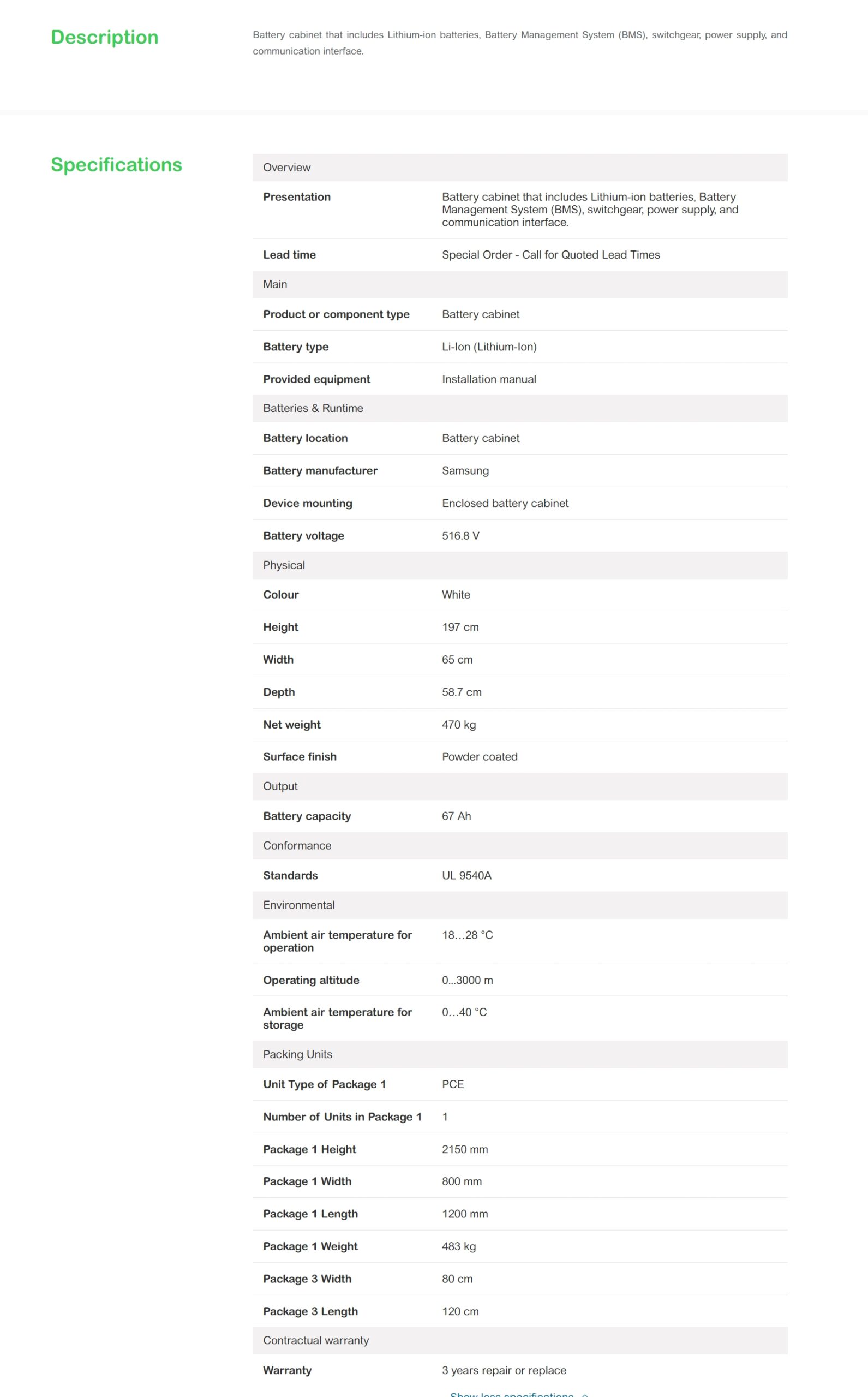 Galaxy Lithium-ion Battery Cabinet IEC with 16 x 2.04 kWh battery modules