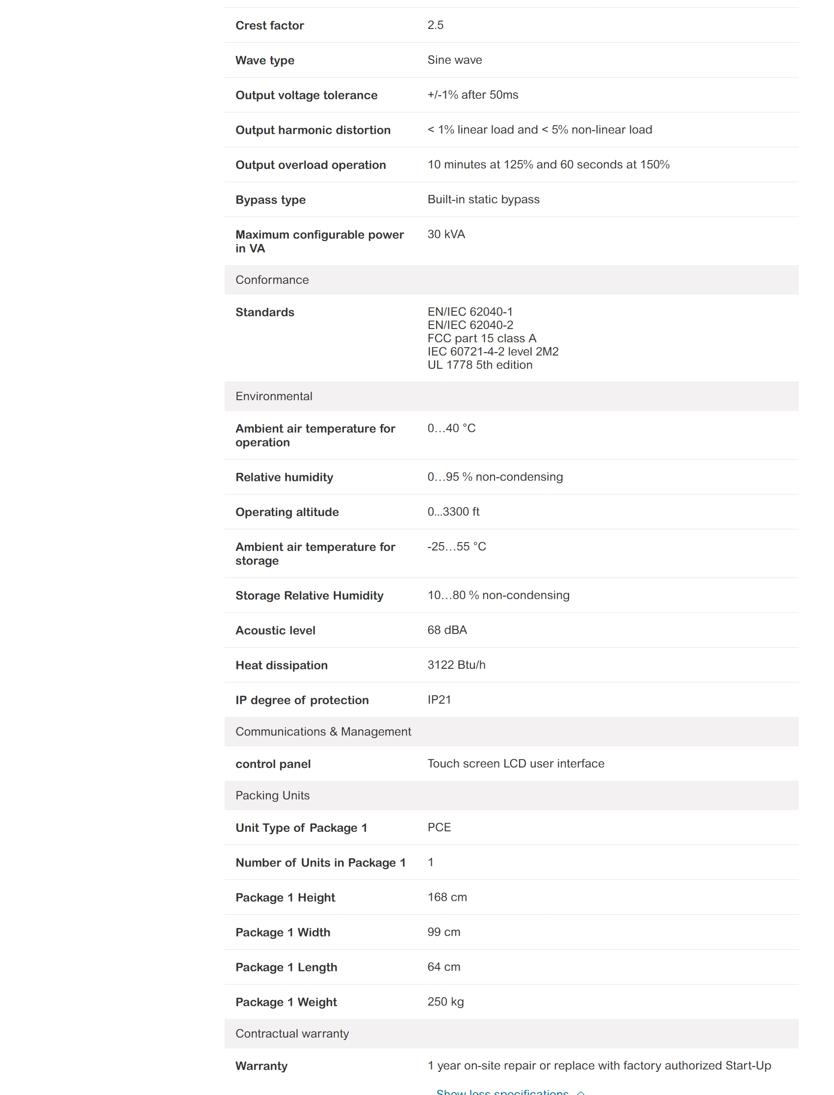 Galaxy VS UPS 30kW 400V with N+1 power module for external batteries Start-up 5×8