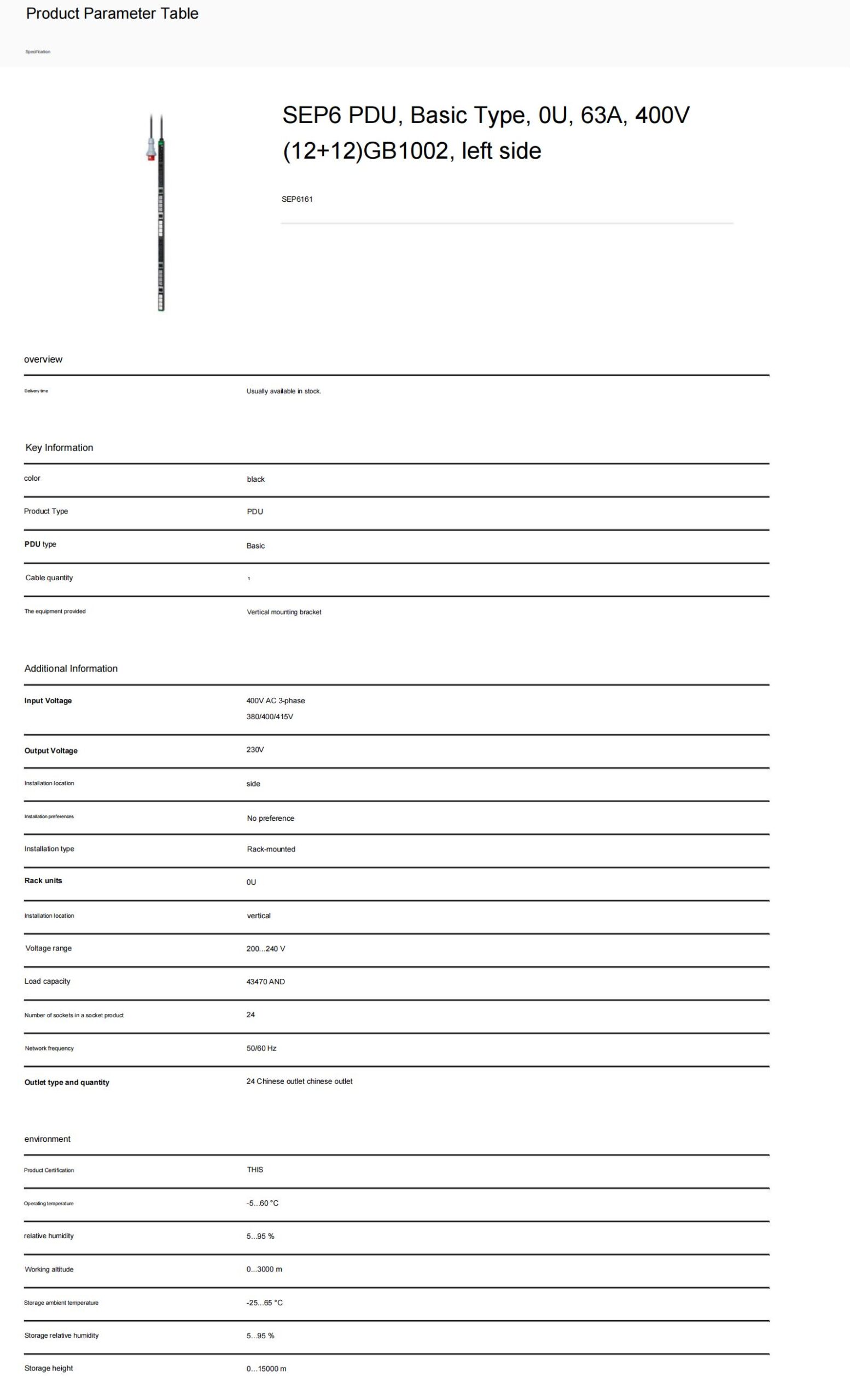 SEP6 PDU, Basic Type, 0U, 63A, 400V,(12+12)GB1002, left side