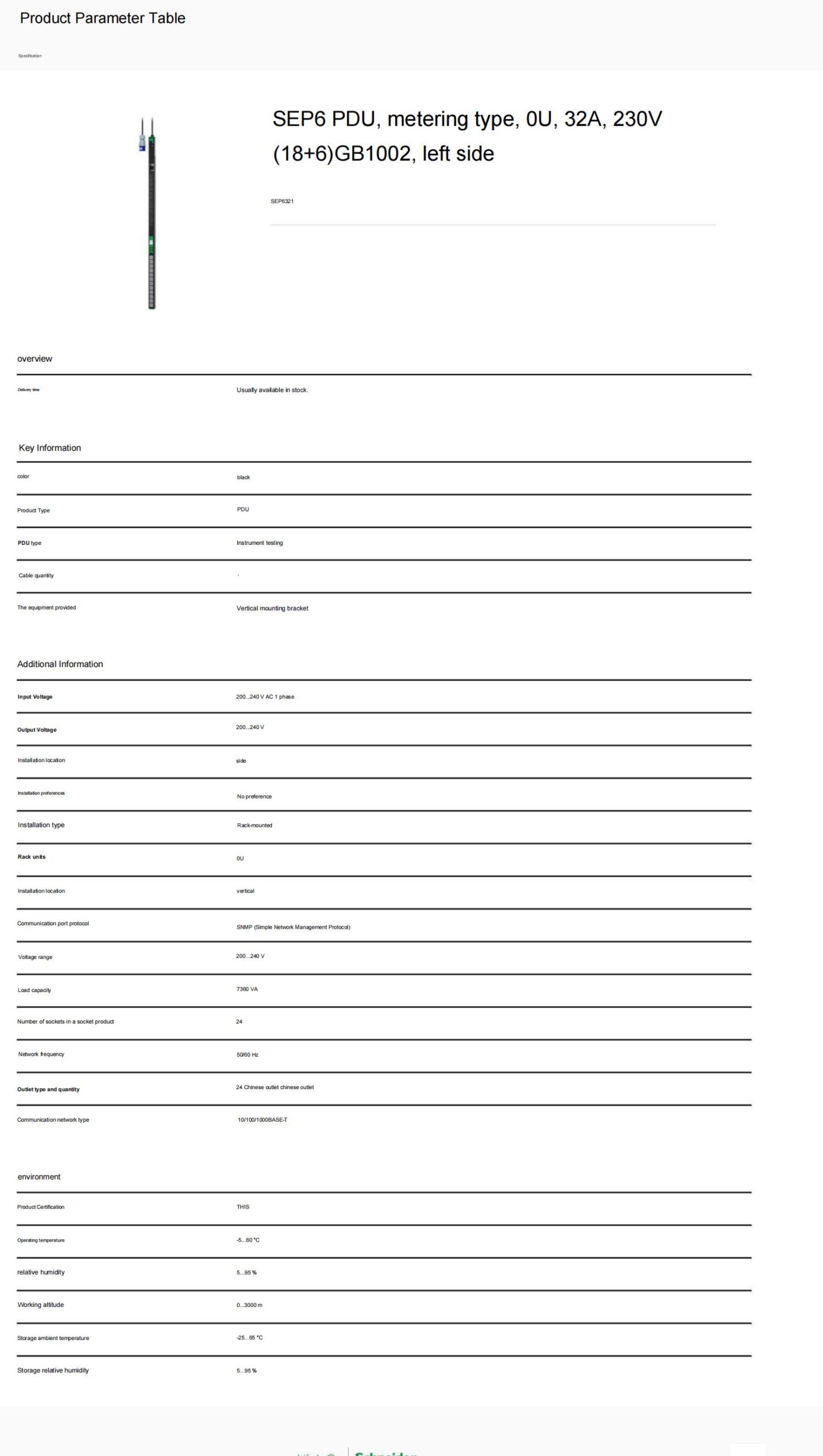 SEP6 PDU, metering type, 0U, 32A, 230V,(18+6)GB1002, left side